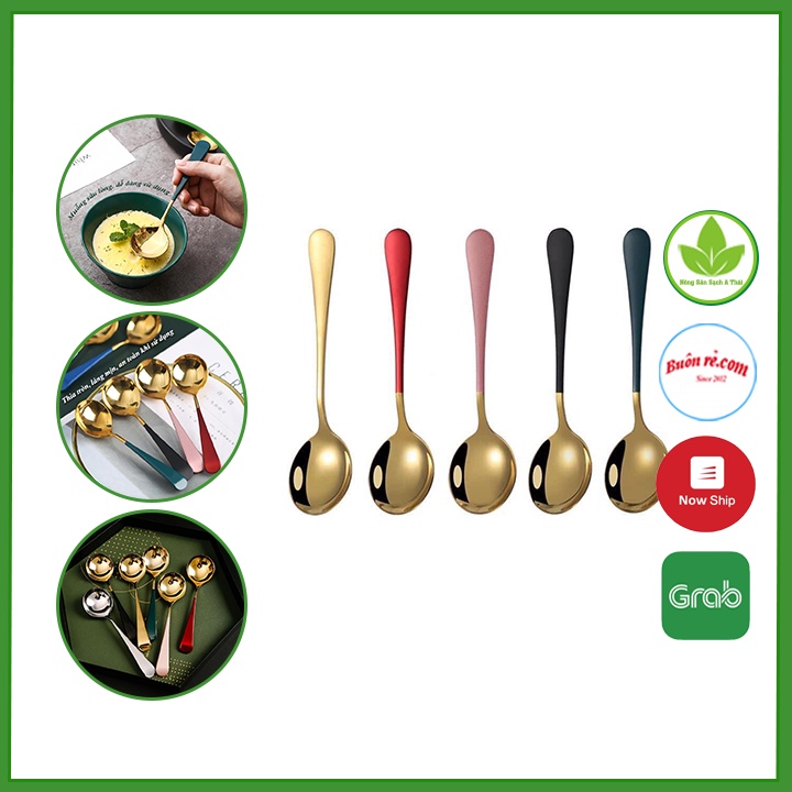 ✔️ Thìa Inox Mạ Vàng Cán Dài Nhiều Màu Với thiết kế tròn, rộng phù hợp khuôn miệng, dễ dàng xúc cơm, soup, cháo...
