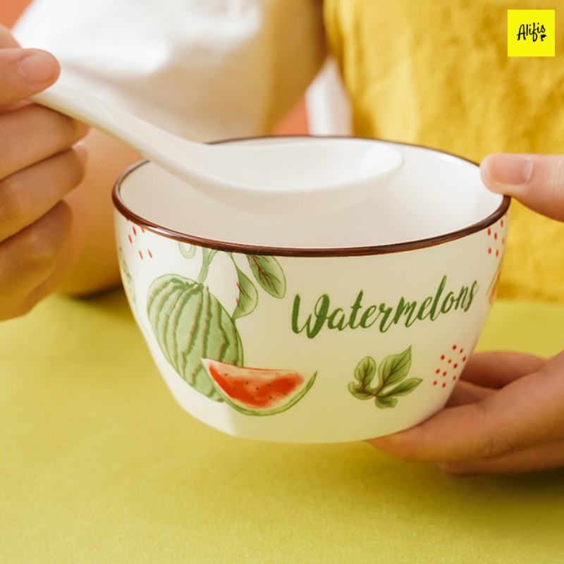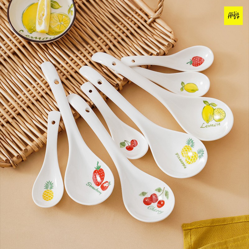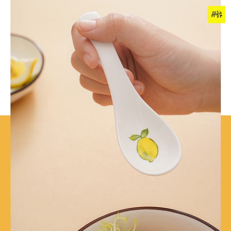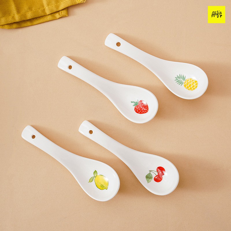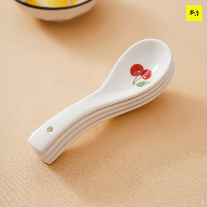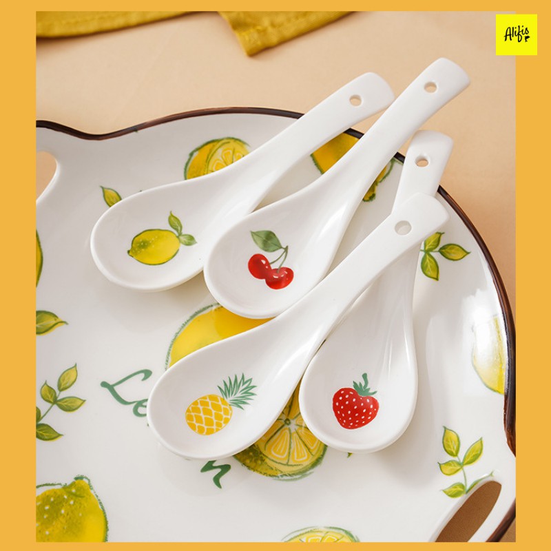 Thìa ăn cơm, muỗng ăn cơm trắng sứ họa tiết hoa quả cực xinh