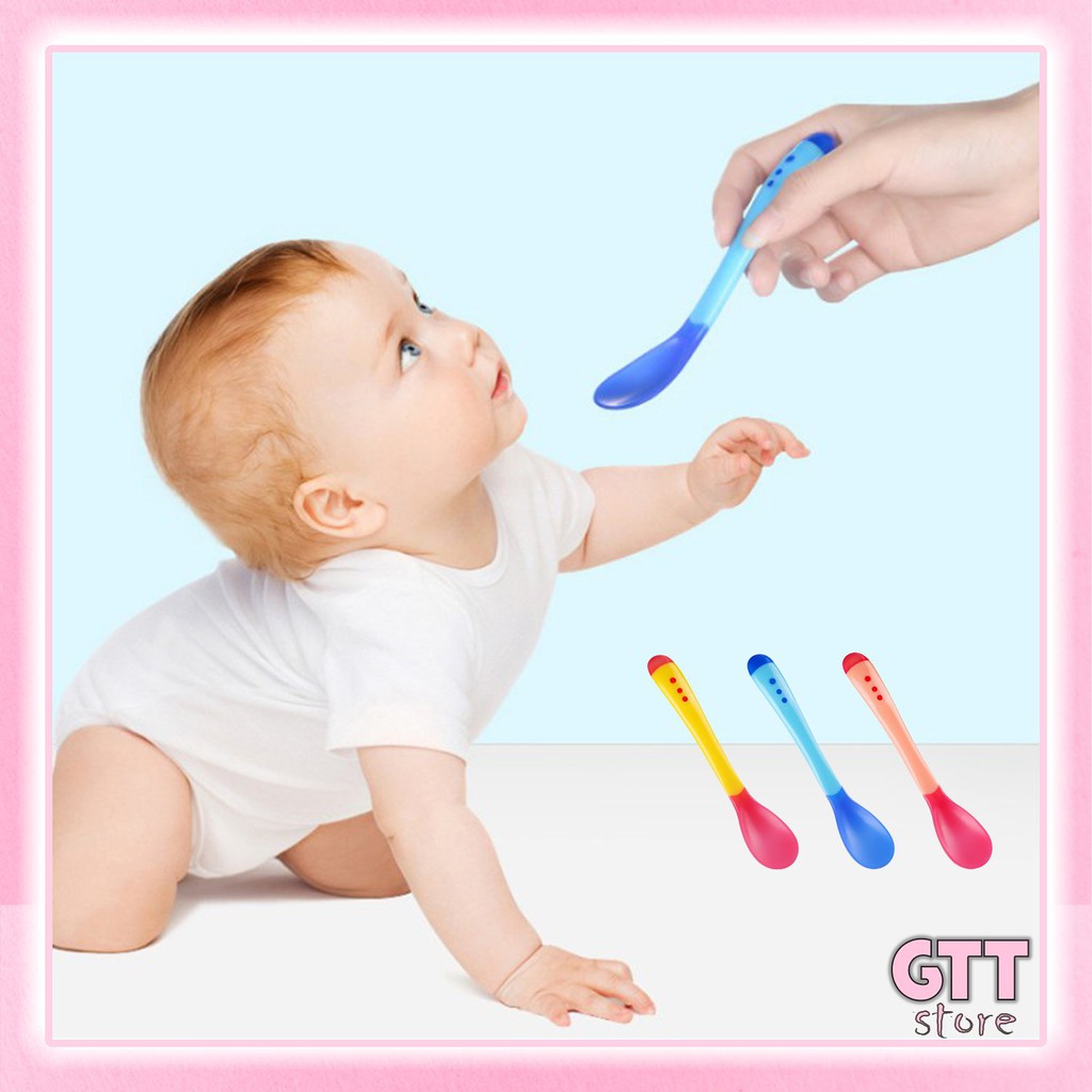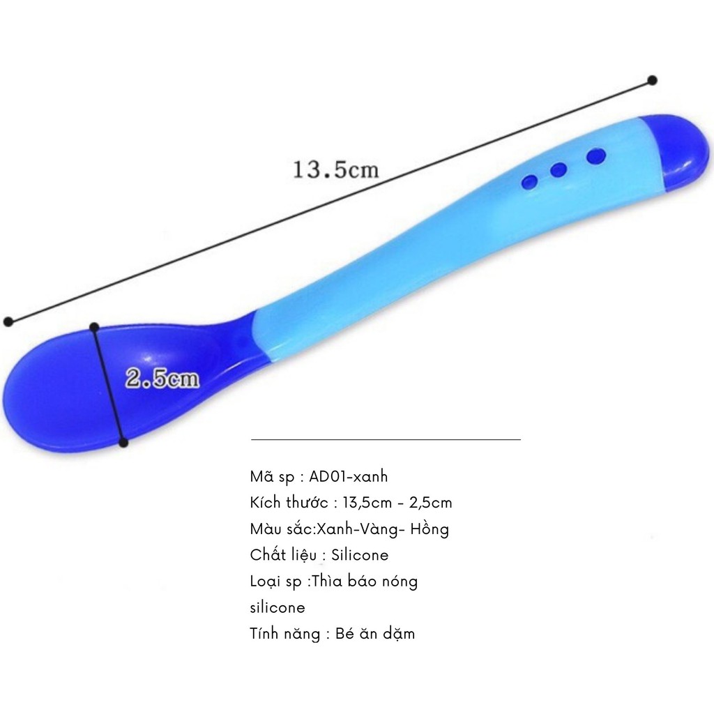 Nhà cửa & Đời sống > Dụng cụ nhà bếp > Dụng cụ đo lường || Thìa ăn dặm báo nóng bón cháo đút bột chất liệu silicon an toàn cao cấp THIA01Còn hàng