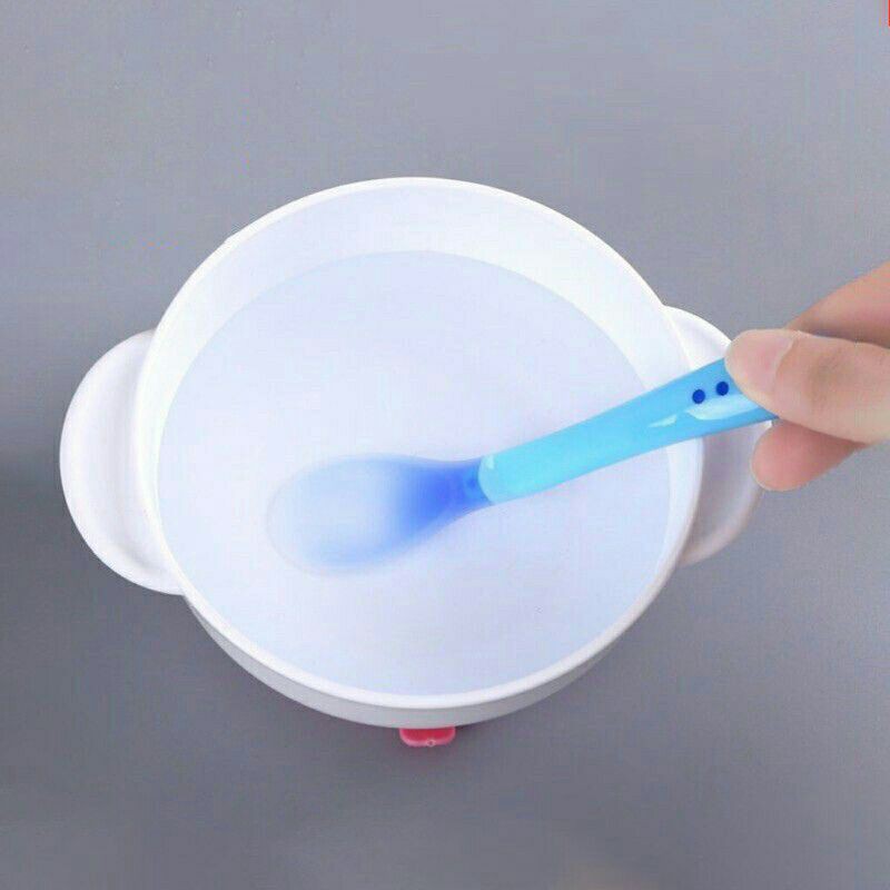 LƯU Ý: Mẹ chỉ cần cho thìa vào bát ăn dặm, nếu thấy thìa đổi sang màu trắng là thức ăn quá nóng có thể nguy hiểm cho bé, mẹ có thể nhúng thìa vào cốc nước lạnh thì màu sắc thìa sẽ trở lại bình thường.