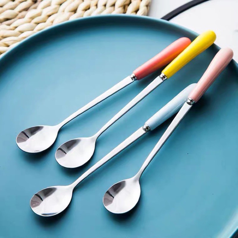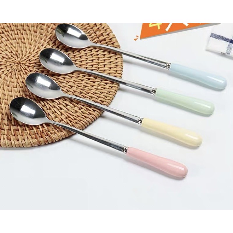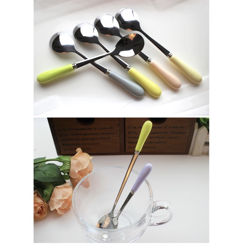 Chất liệu inõx cao cấp bền đẹp, sáng bóng thiết kế cán thìa nhiều màu sắc dễ thương 🥰- Dễ dàng vệ sinh chùi rửa