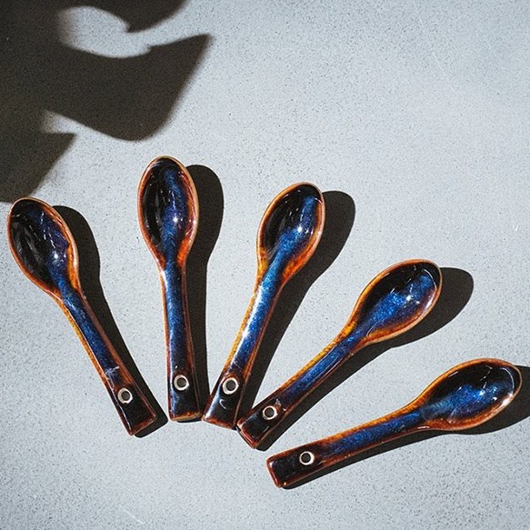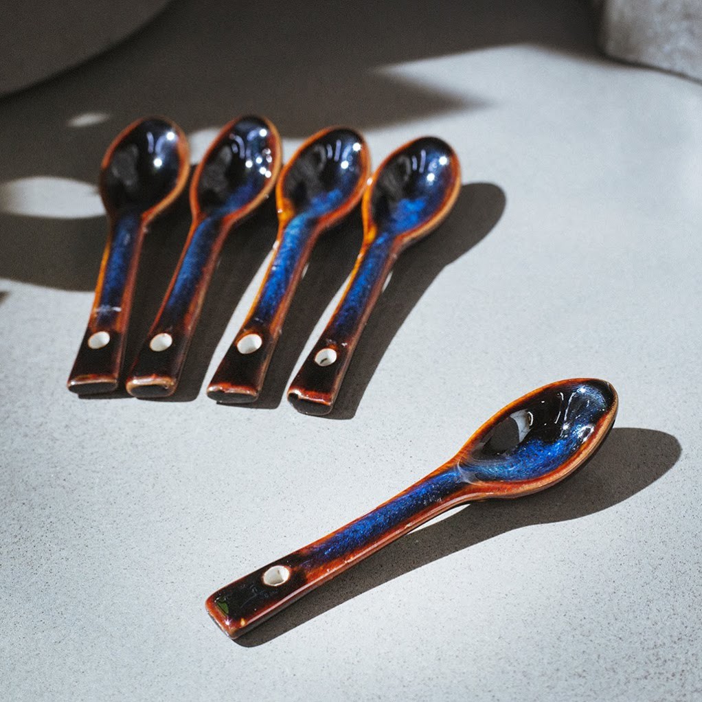 Nhà cửa & Đời sống > Dụng cụ nhà bếp > Dụng cụ pha trà, cà phê || Thìa cà phê - men xanh hỏa biến Sản xuất tại xưởng gốm sứ gia oanh authentic bat trangCòn hàng
