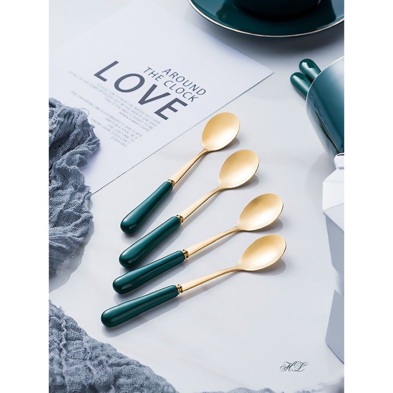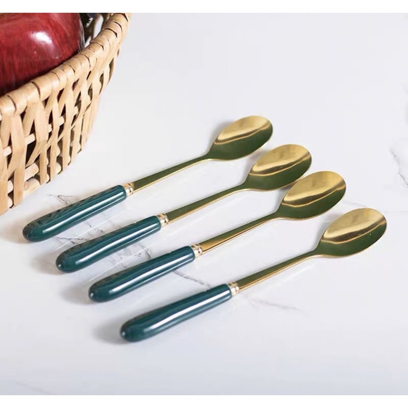 thìa cà phê vàng cán sứ xanh cổ vịt mẫu mới cao cấp
