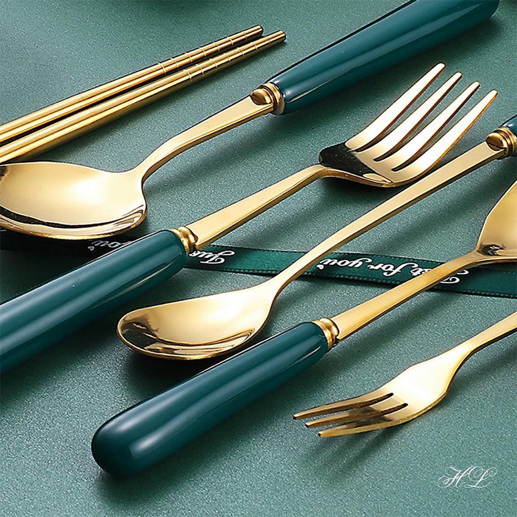 Nhà cửa & Đời sống > Bộ đồ bàn ăn > Bộ dao kéo || Thìa Cafe inox mạ vàng cán sứ xanh cổ vịt 15cmCòn hàng