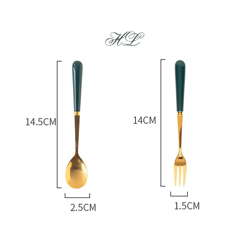 Giới thiệu Thìa Cafe inox mạ vàng cán sứ xanh cổ vịt 15cm