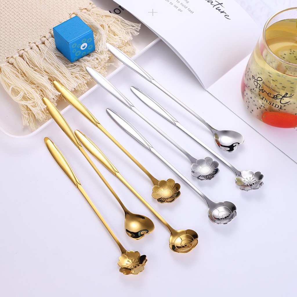 Thìa cafe, muỗng cà phê inox 304 cao cấp, hai màu vàng bạc sang trọng hoa văn siêu đẹp trang trí bàn ăn, decor MTC06