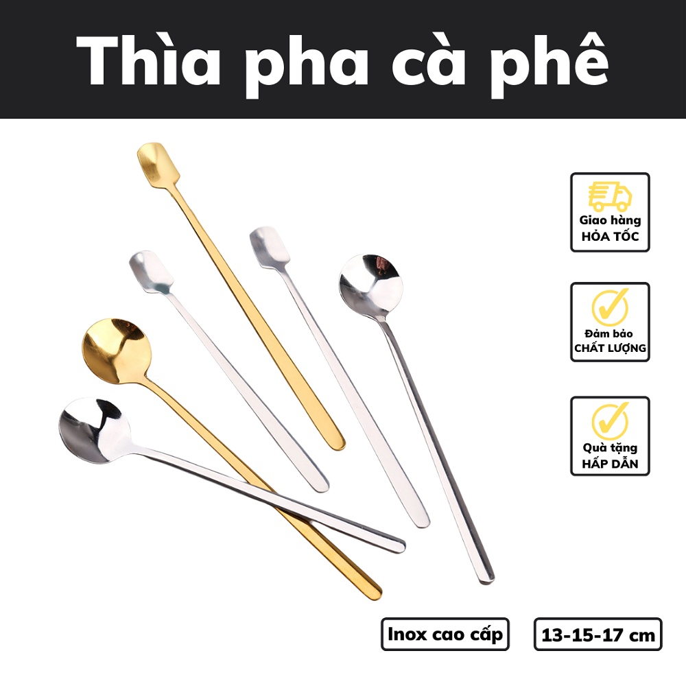 Thìa cafe pha trà ăn bánh cán dài muỗng cà phê thiết kế tinh tế kiểu dáng sang trọng độ dài 13 - 15 - 17cmThông tin sản phẩm: