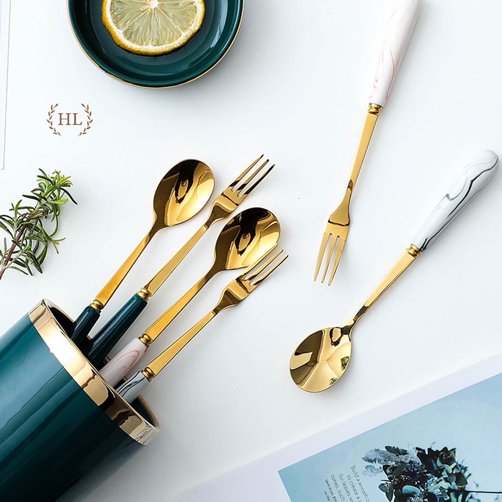 Thìa cafe sứ - Nĩa(Rĩa) tý sứ cao cấp | THÌA NĨA INOX CÁN SỨ