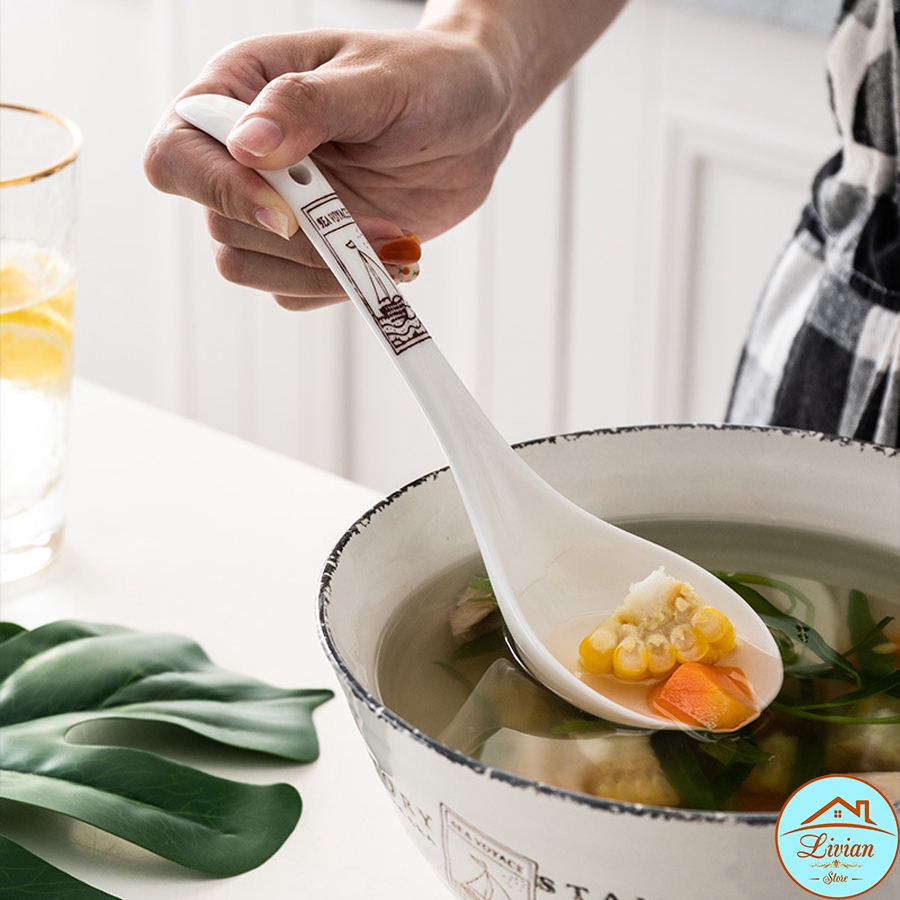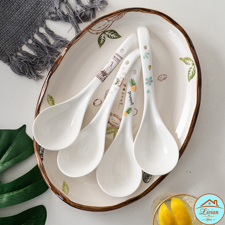 Thìa canh, muỗng canh sứ trắng tay cầm nhiều họa tiết cực xinh
