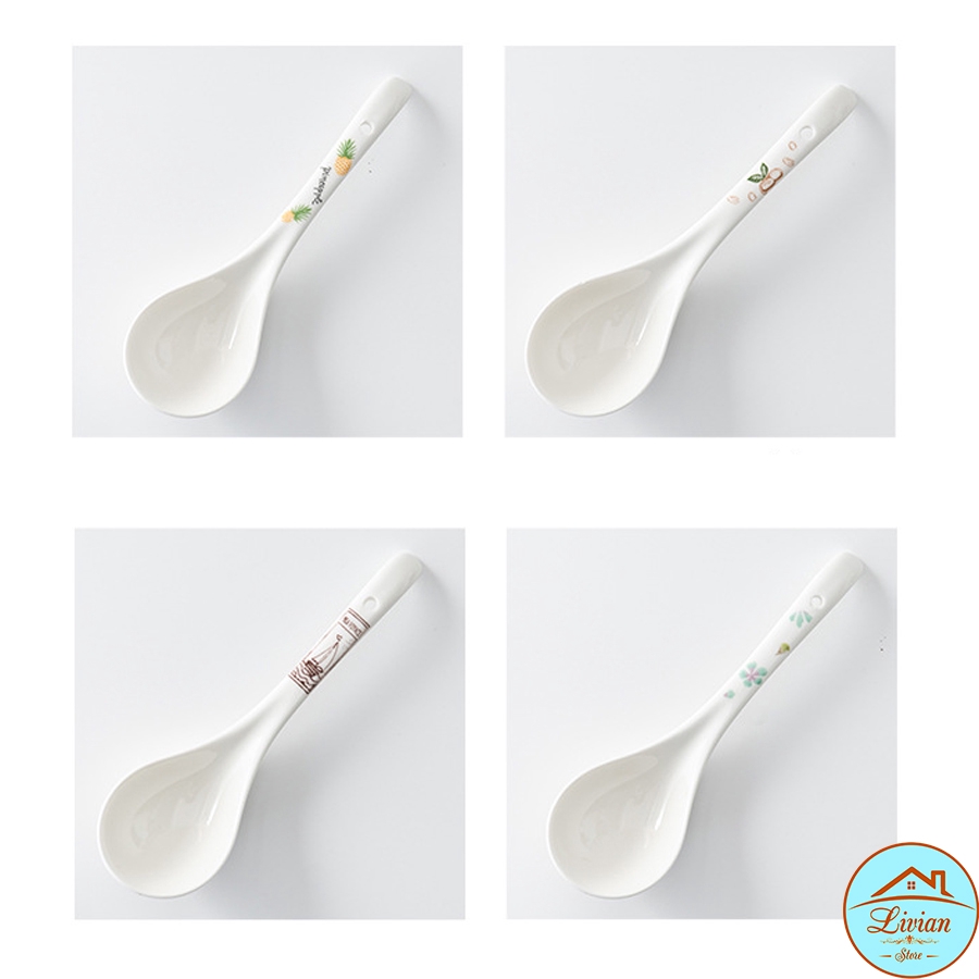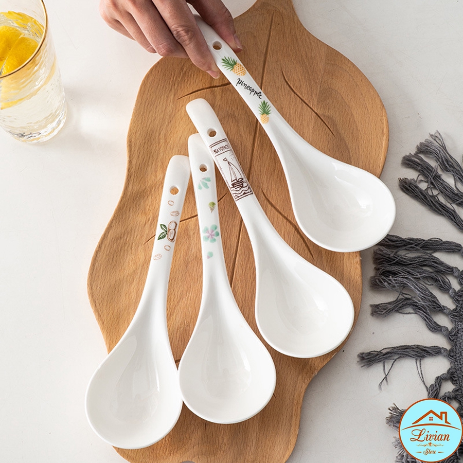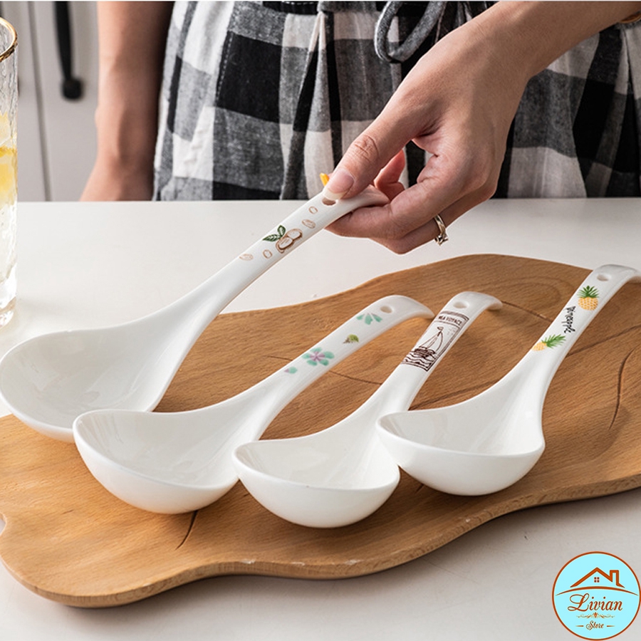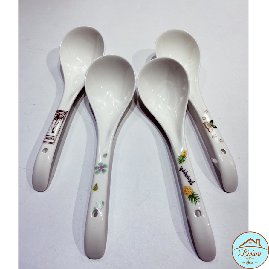 Nhà cửa & Đời sống > Bộ đồ bàn ăn > Bộ dao kéo || Thìa canh, muỗng canh sứ trắng tay cầm nhiều họa tiết cực xinhCòn hàng