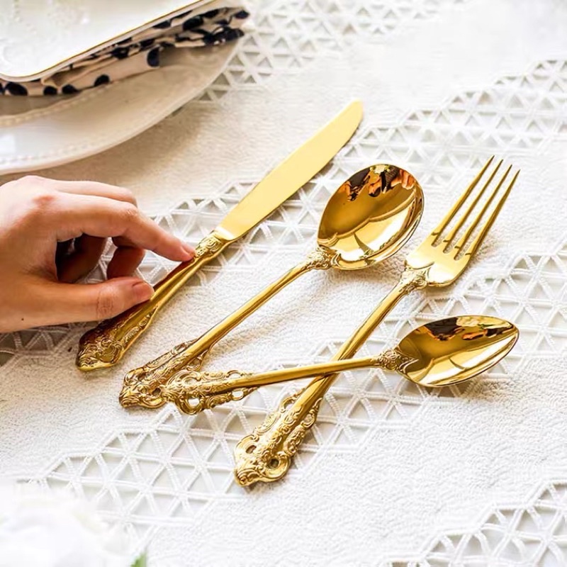 Thìa, dao, dĩa phong cách Bắc Âu cao cấp,[CÓ ẢNH THẬT], thiết kế hoàng gia, sang trọng tinh tế độc đáo, màu vàng và bạc