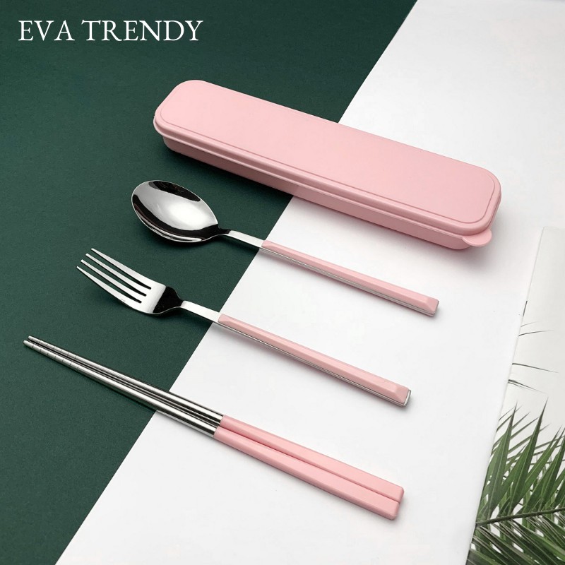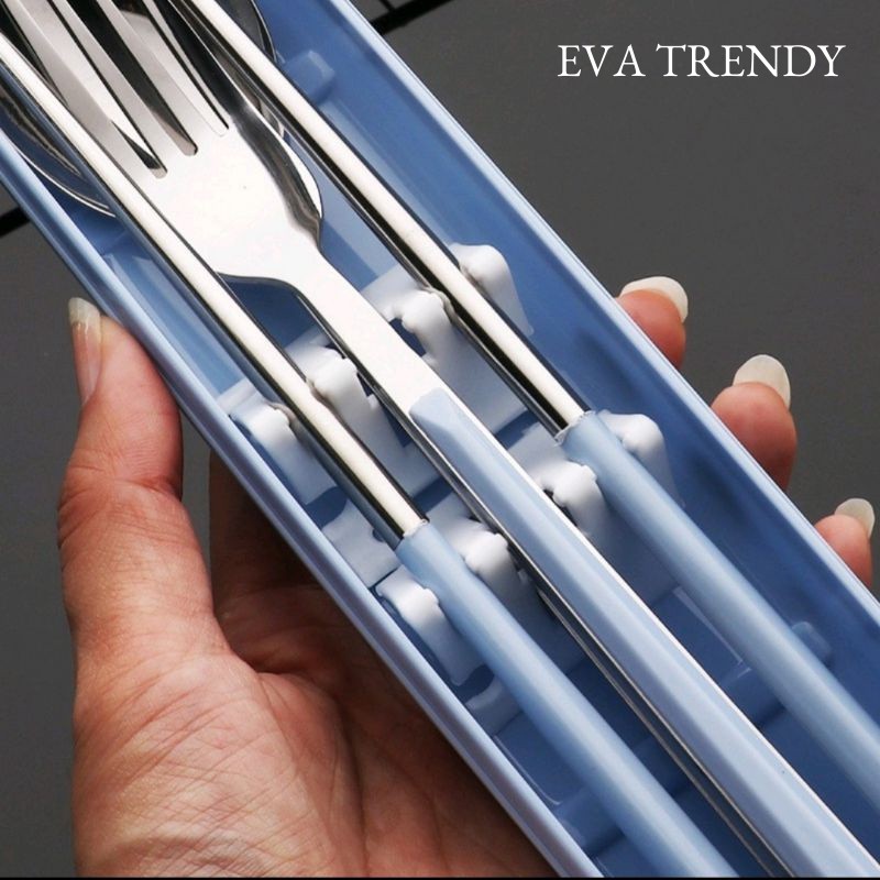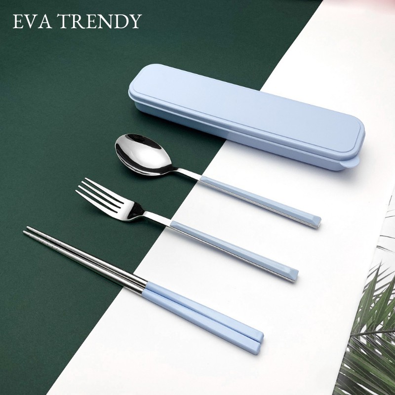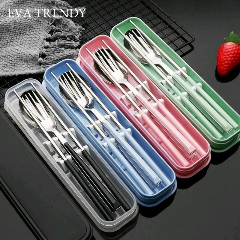 Bộ Muỗng Thìa 💥Cao Cấp💥 Inox 304 Cá Nhân Cơm Trưa Văn Phòng Dã Ngoại Tặng Kèm Hộp Đựng Sét 3 Tiện LợiGiá 59k