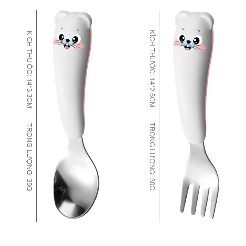 Nhà cửa & Đời sống > Bộ đồ bàn ăn > Dĩa || 【𝗦𝗨𝟯𝟬𝟰】Bộ thìa dĩa ăn cao cấp cho bé Happy Cat - YeahcookCòn hàng
