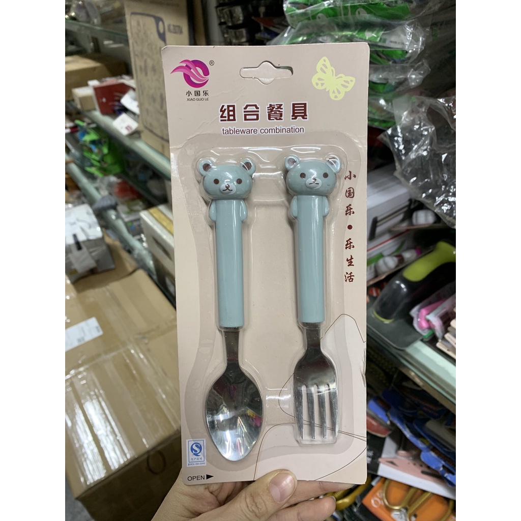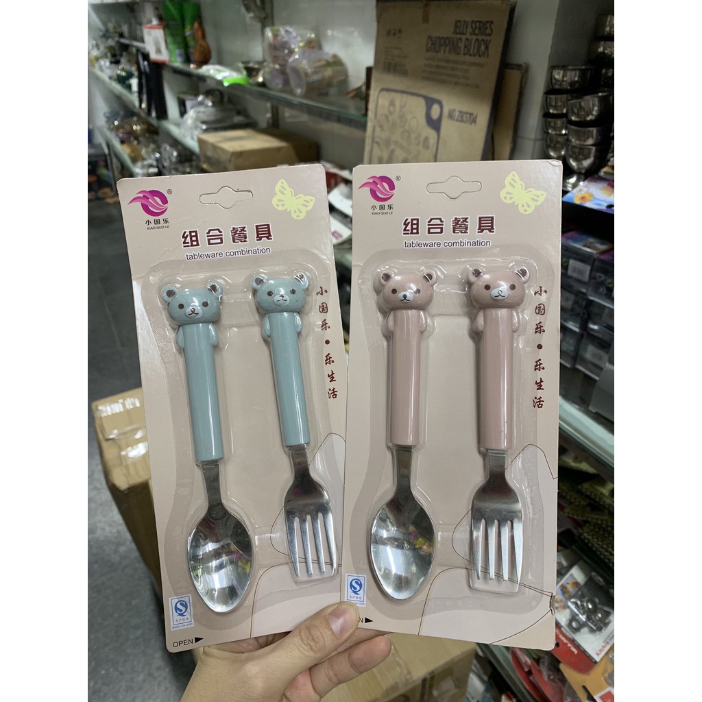 Nhà cửa & Đời sống > Bộ đồ bàn ăn > Dĩa || Bộ thìa dĩa ăn dặm inox cán gấu xinh xắnCòn hàng