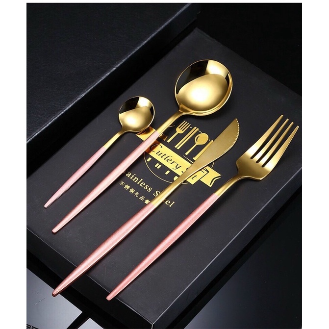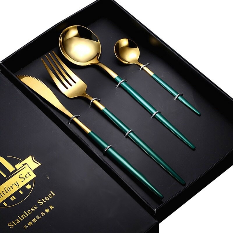 Nhà cửa & Đời sống > Bộ đồ bàn ăn > Bộ dao kéo || Bộ thìa ,dĩa, dao mạ vàng 4 món sang chảnh nhiều màu siêu sang cực đẹp. abanCòn hàng