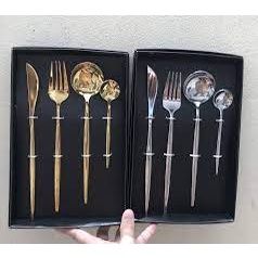 Nhà cửa & Đời sống > Bộ đồ bàn ăn > Bộ dao kéo || Thìa, dĩa, dao phong cách Bắc Âu cao cấp sản phẩm băng inox mạ titan k rỉ, bền đẹp 4 chi tiếtCòn hàng