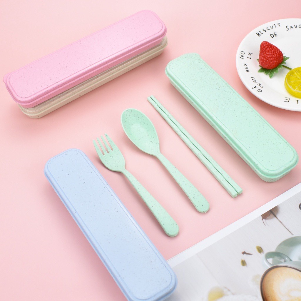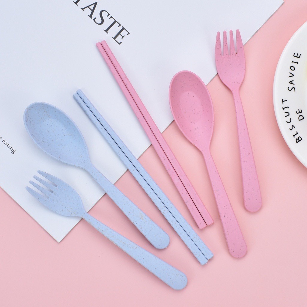Bộ thìa, dĩa, đũa bằng lúa mạch - Bộ dụng cụ ăn uống văn phòng an toàn, thân thiện môi trường Molangshop