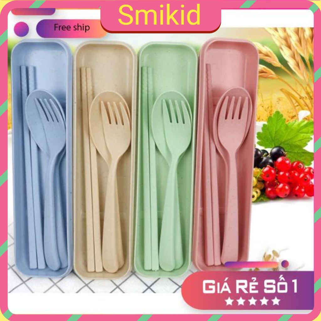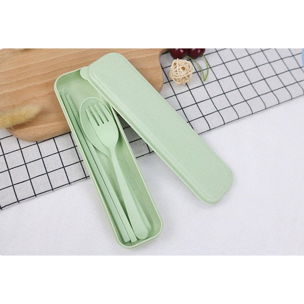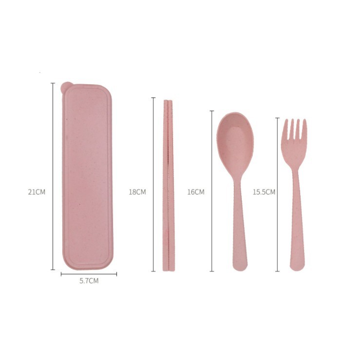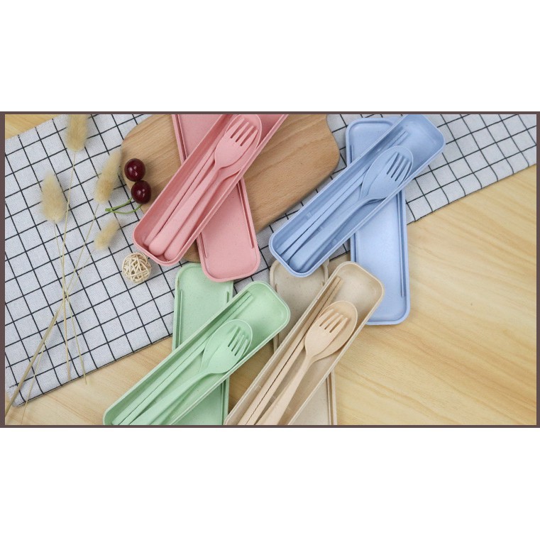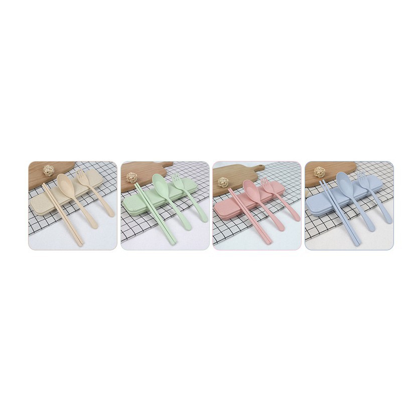 Giới thiệu Bộ Thìa Dĩa Đũa Bằng Lúa Mỳ Ăn Trưa Văn Phòng, Du Lịch An Toàn ( giao màu ngẫu nhiên)