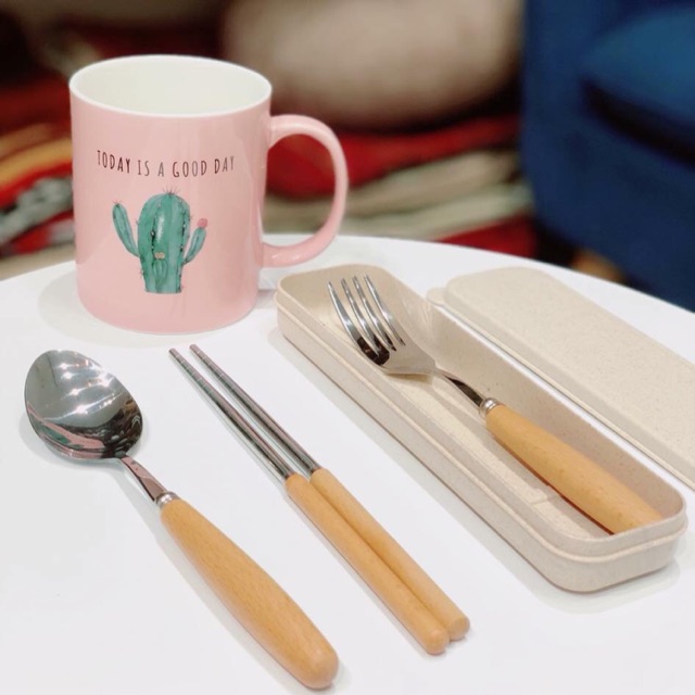 Bộ đũa, thìa, dĩa cán gỗ sồi 🕌sỉ:#3x/1 bộ