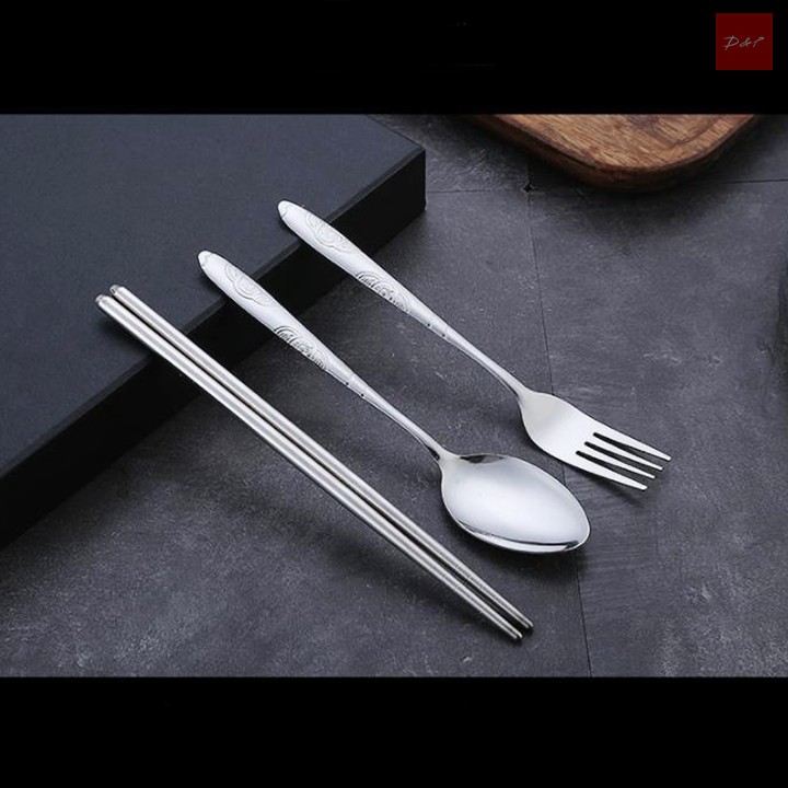 - Chất liệu: Muỗng, đũa, dĩa bằng thép không gỉ, hộp bằng nhựa PP