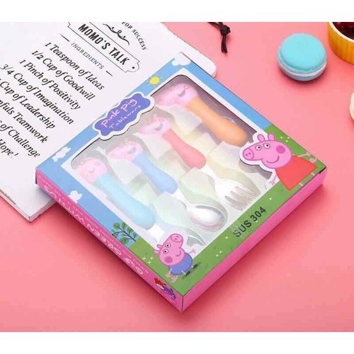 Bộ muỗng thìa nĩa inbox gia đình Peppa Pig cho bé:+ Sản phẩm gồm: hai muỗng thìa + hai nĩa hình gia đình Peppa Pig