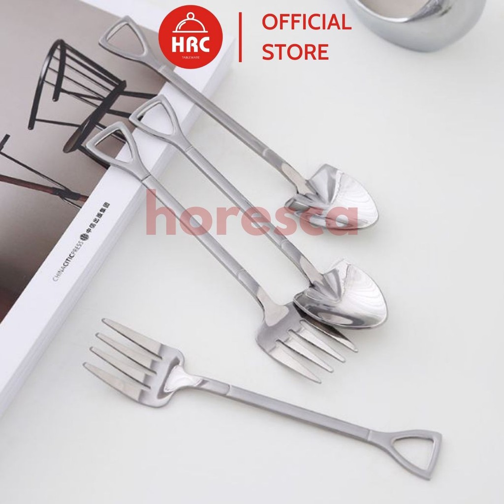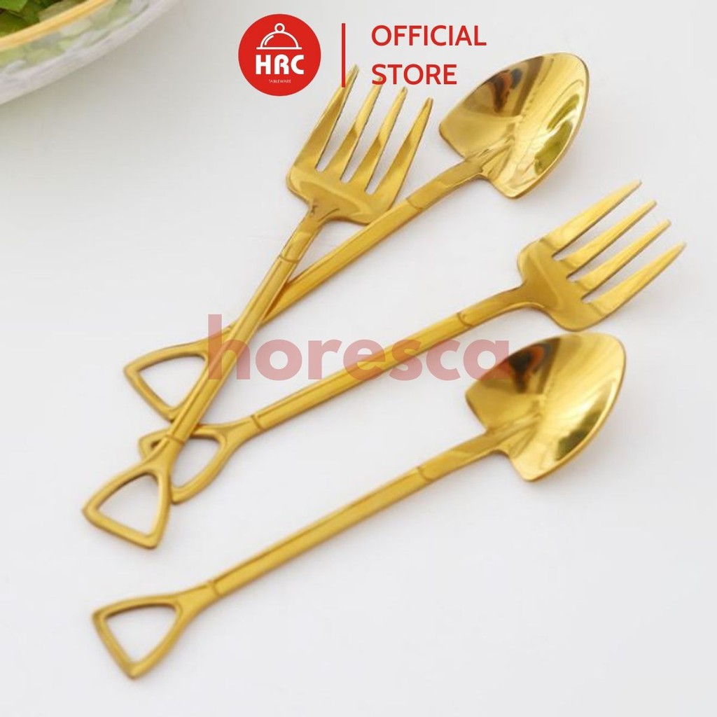 Bộ thìa dĩa hình xẻng inox mạ vàng, bạc độc đáo, giá rẻ