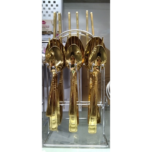 Nhà cửa & Đời sống > Bộ đồ bàn ăn > Bộ dao kéo || bộ thìa dĩa inox 304 kèm giá cheo 24 món 2 màu vàng trắng phong cách Bắc ÂuCòn hàng