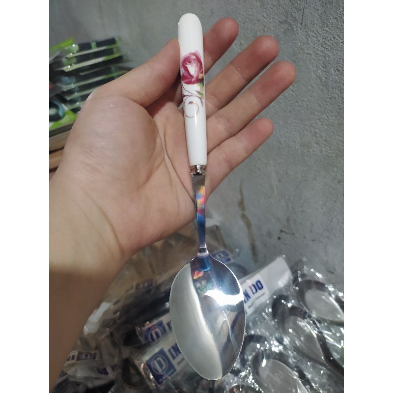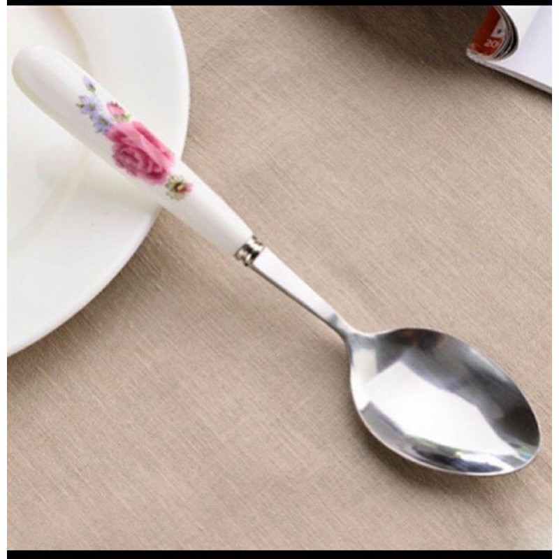 ** Thìa có kích thước vừa vặn, thuận tiện khi sử dụng. Đặc biệt phần cán cầm khá độc đáo với chất liệu sứ có hoa văn, không trầy xước, đẹp mắt. Không chỉ thoải mái khi dùng bữa, sản phẩm dễ vệ sinh, dễ lau khô.