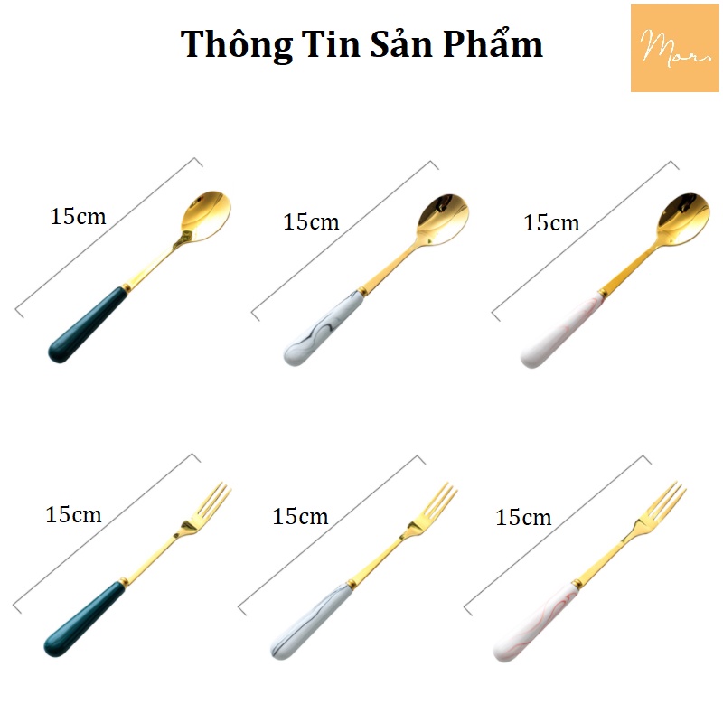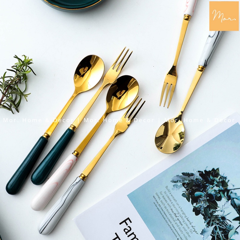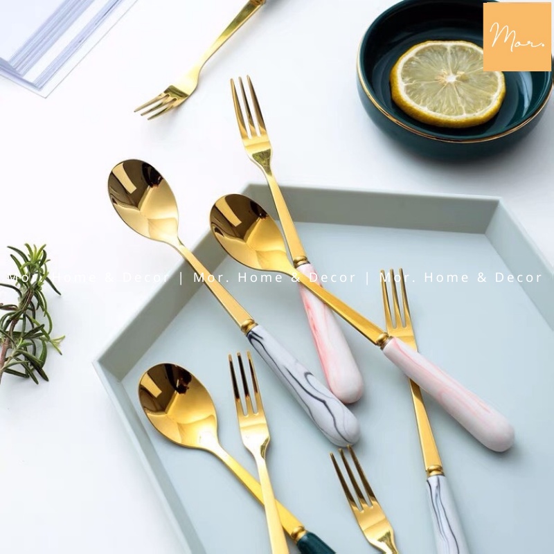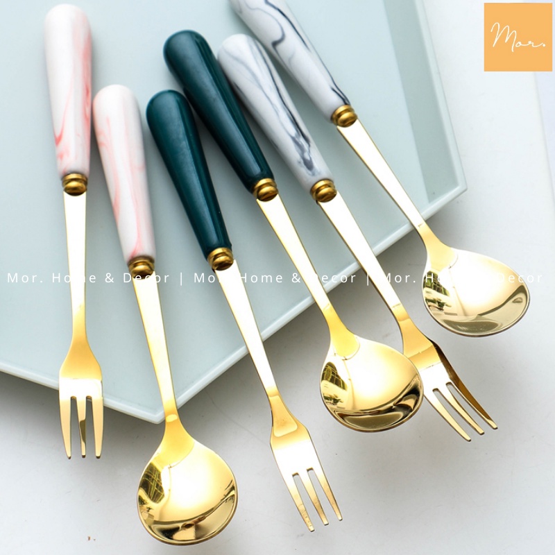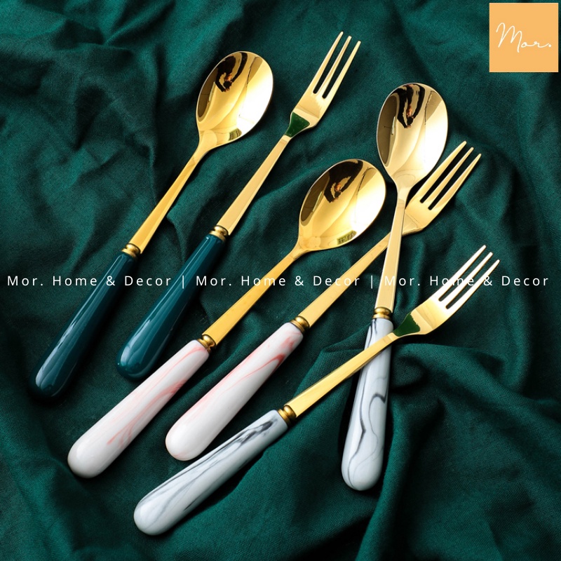Thìa dĩa inox cán sứ (Xanh, trắng, xám, hồng)