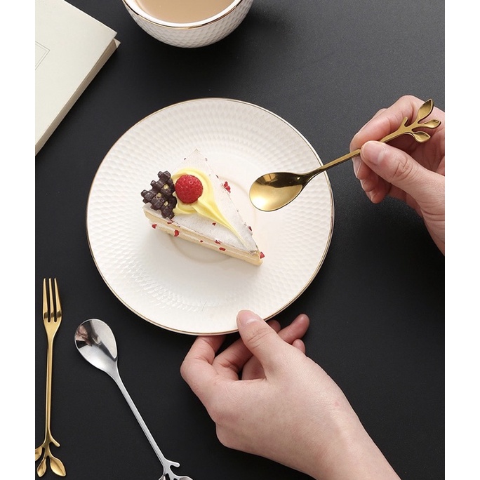 THÌA, DĨA INOX MẠ | THÌA, DĨA VINTAGE HÌNH LÁ