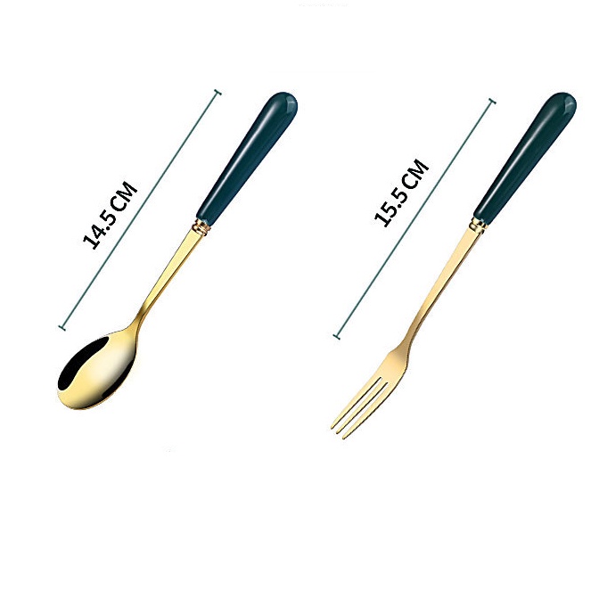 Thìa dĩa mạ vàng cán sứ màu xanh nĩa ăn trái cây / muỗng cà phê dài 15cm***THÔNG TIN SẢN PHẨM