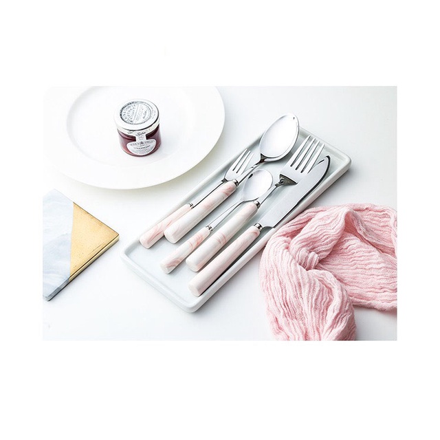 Dĩa inox cán sứ vân đá cẩm thạch cao cấp loại 1