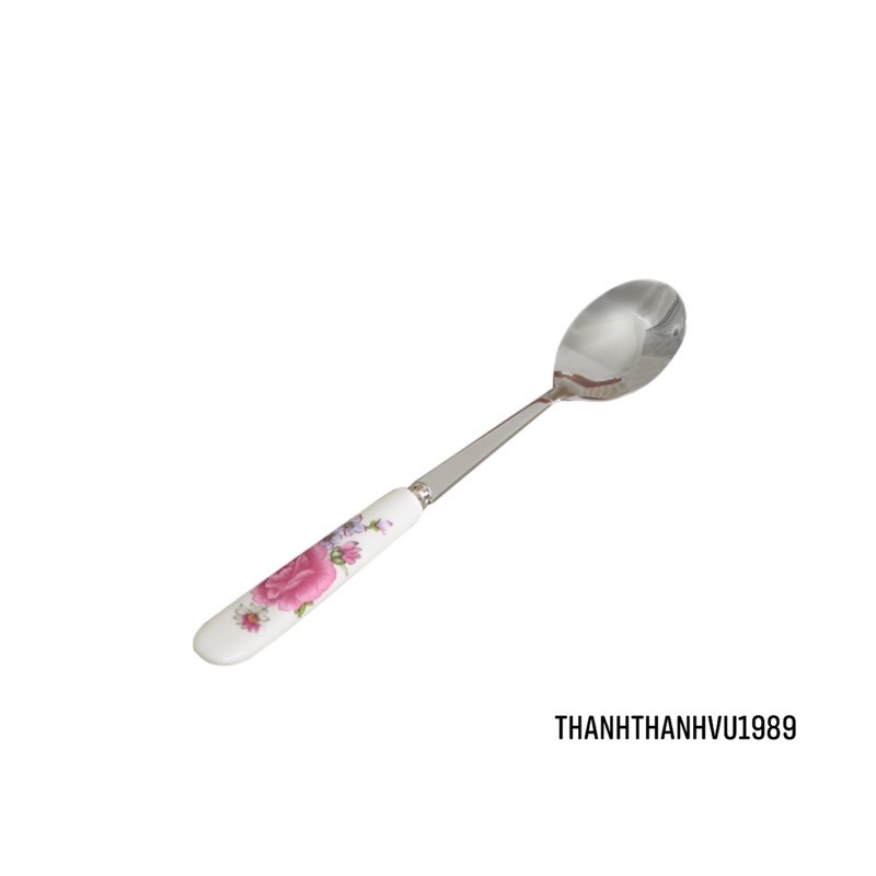 Thìa/dĩa (nĩa) inox cán sứ in hoa, dĩa ăn hoa quả nhà bếp