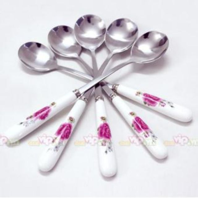 Thìa dĩa (nĩa) sứ trắng cà phê ăn hoa quả chuôi giả sứ thép trắng