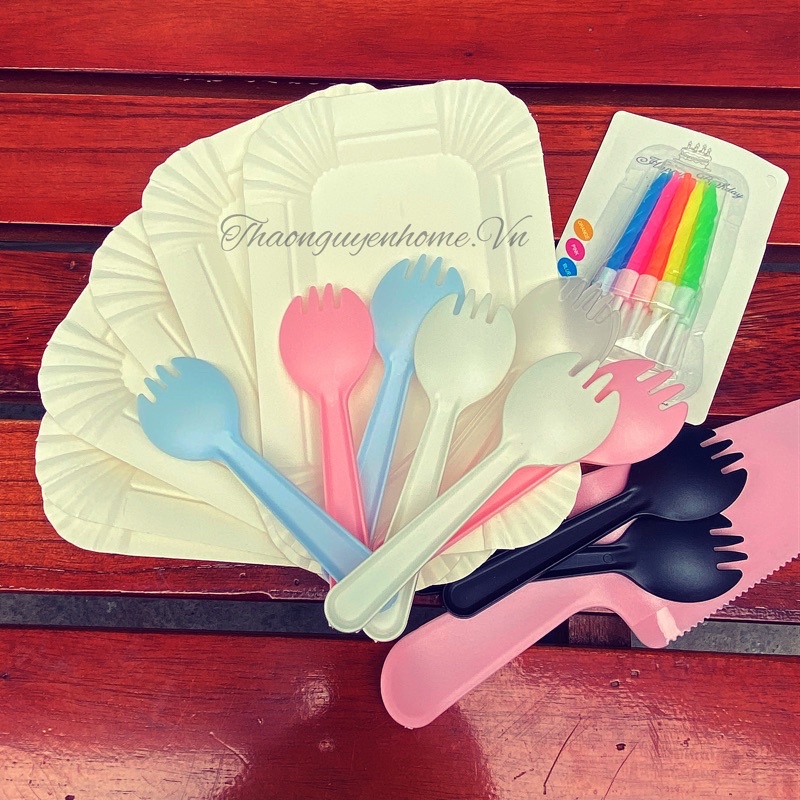 Giới thiệu Bộ thìa dĩa sinh nhật kèm bát giấy, nến, cắt bánh chất liệu an toàn