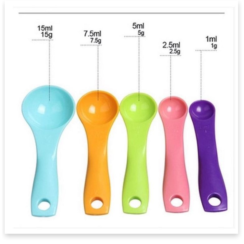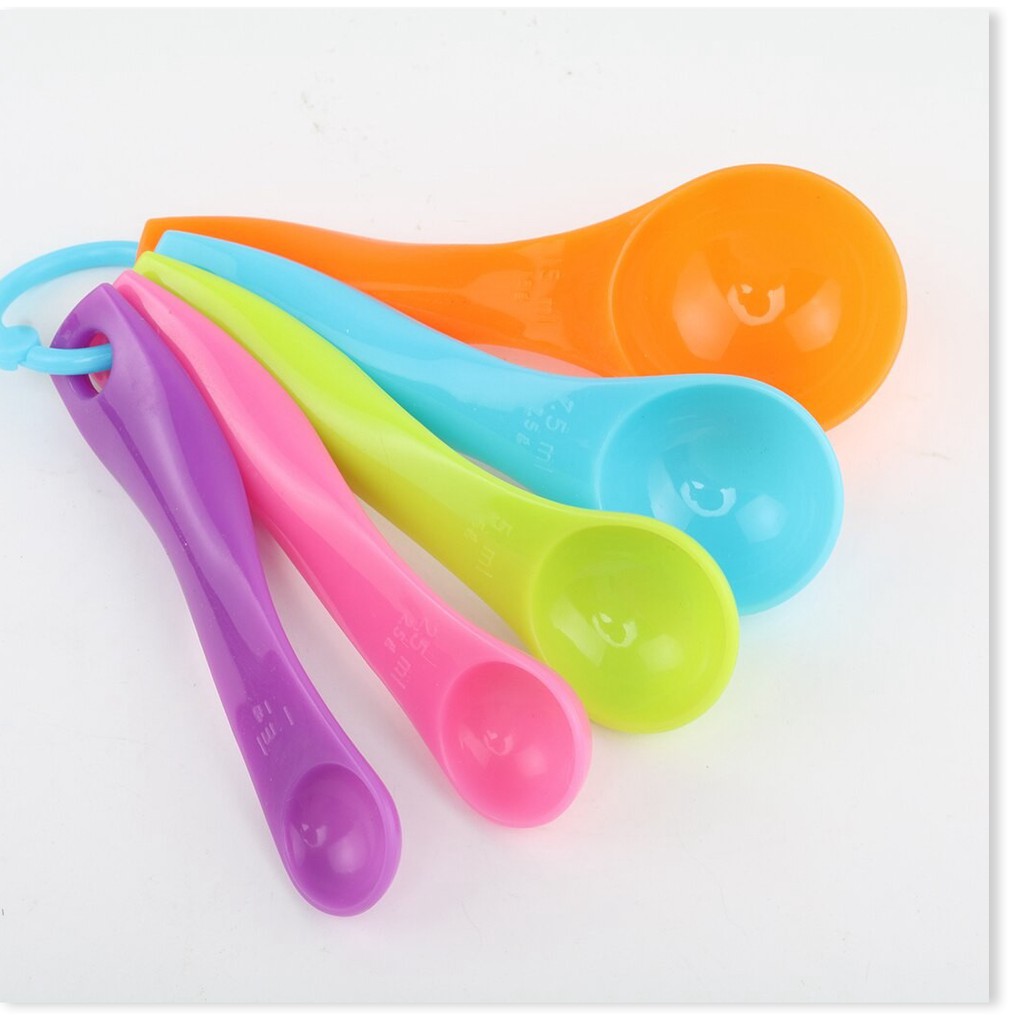 🌈 Bộ 05 muỗng đo lường bằng nhựa cao cấp thuận tiện cho bạn đo lường chính xác nguyên liệu để chế biến thức ăn.