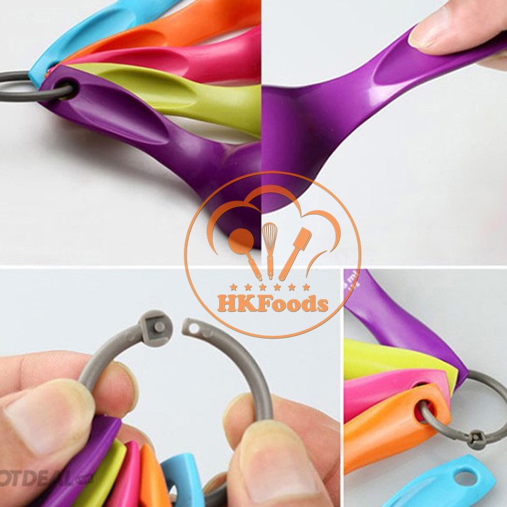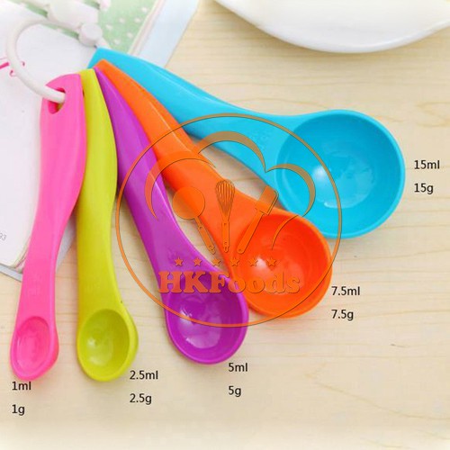 Bộ 5 muỗng đo lường bằng nhựa cao cấp thuận tiện cho bạn đo lường chính xác nguyên liệu để chế biến thức ăn.Kiểu dáng đơn giản, thiết kế xinh xắn. Có móc khóa giúp cố định bộ muỗng chắc chắn, dễ dàng treo móc, bảo quản.