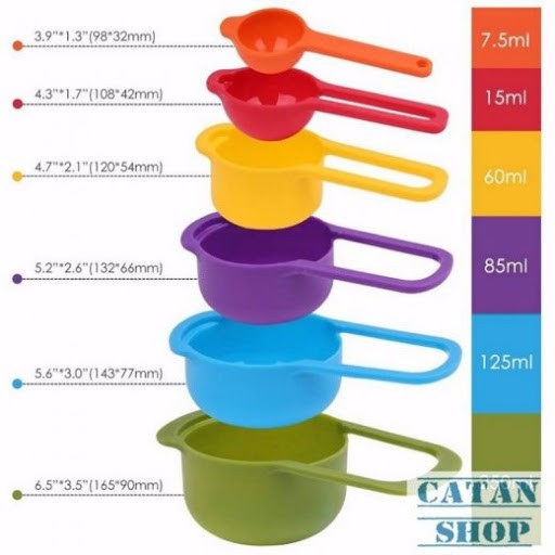 Bộ thìa đong 6 mónChất liệu: nhựa an toàn