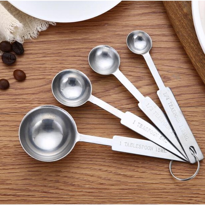 Bộ thìa hỗ trợ cho việc nấu ăn, pha chế thao tác chuẩn xácBộ thìa đong inox 4 cái (1.25ml,2.5ml,5ml,15ml)