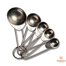Bộ thìa đong inox 5 chiếc (Đơn vị tsp,ml)Bộ thìa đong nằm trong số những dụng cụ làm bánh cơ bản cần phải có của mỗi bạn muốn làm bánh. Chiếc bánh thơm ngon đúng vị có thể thành công hay không một phần dựa vào tỷ lệ nguyên liệu của chính xác đến đâu chính xác đến đâu đấy ạ. Hôm nay Tropicana giới thiệu đến bạn bộ thìa đong 5 chiếc được làm bằng inox bền đẹp chắc chắn.