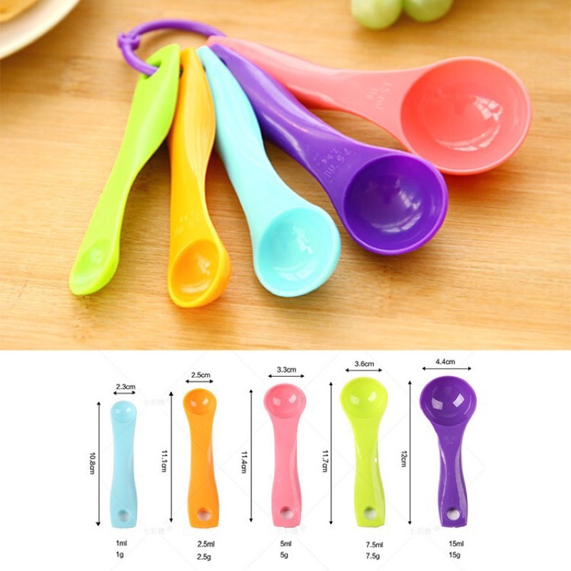 Bộ thìa đong, muỗng đong nhà bếp 5 món (set 5 cái), thìa đo lường, định lượng bột, sữa, thuốc, gia vị bằng nhựa an toànĐặc điểm nổi bật