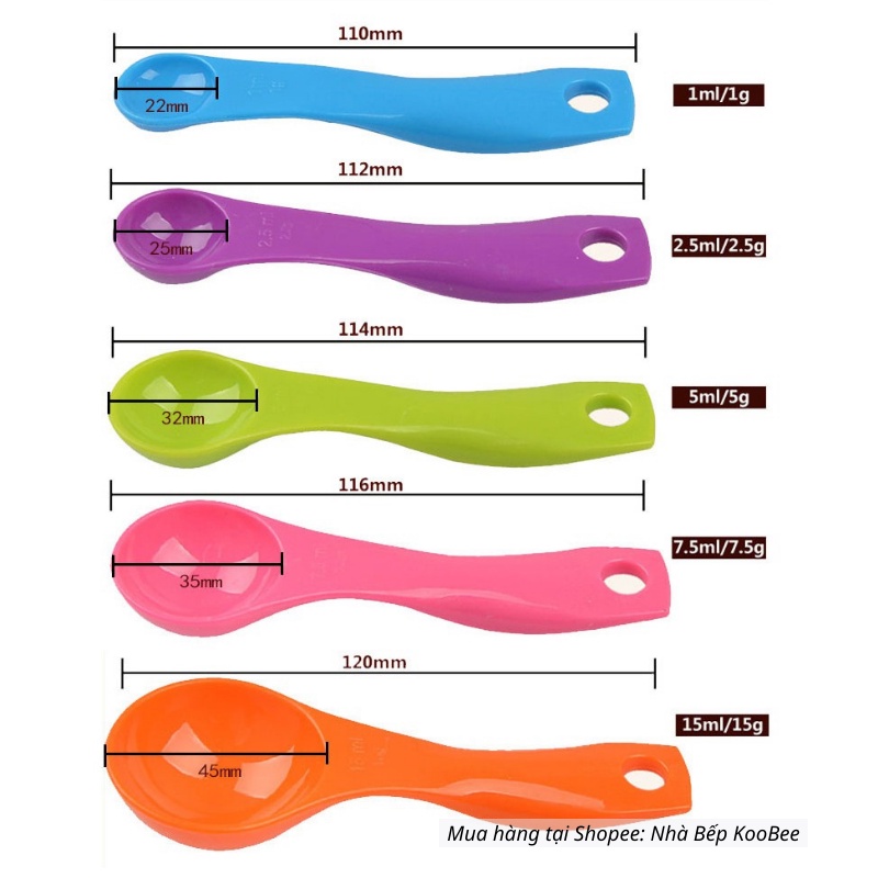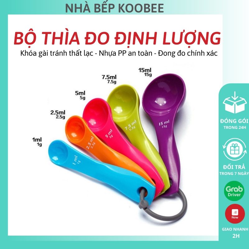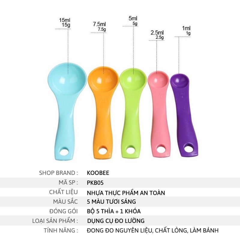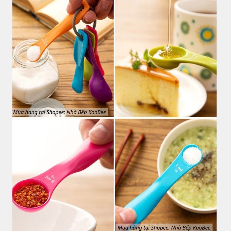 - Bộ 05 muỗng đo lường bằng nhựa cao cấp thuận tiện cho bạn đo lường chính xác nguyên liệu để chế biến thức ăn.