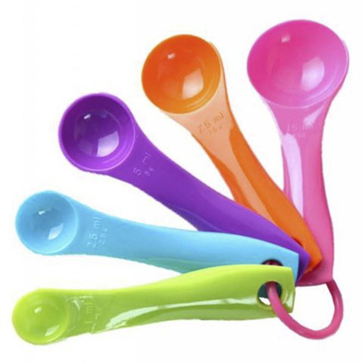 Bộ thìa đong, muỗng đong nhà bếp 5 món (set 5 cái), thìa đo lường, định lượng bột, sữa, gia vị bằng nhựa an toànBộ 05 muỗng đo lường bằng nhựa cao cấp thuận tiện cho bạn đo lường chính xác nguyên liệu để chế biến thức ăn
