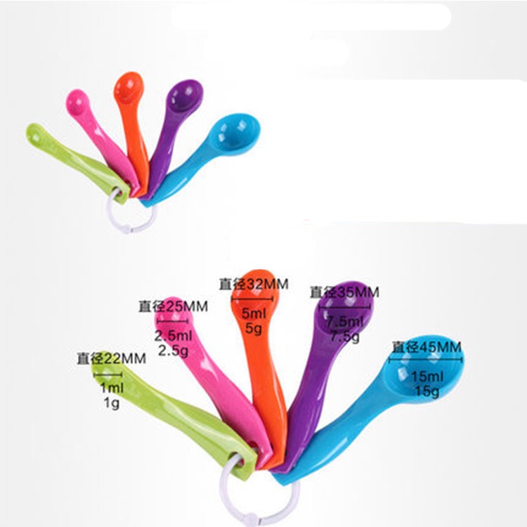 Bộ thìa đong, muỗng nhà bếp 5 món (set 5 cái), thìa đo lường, định lượng bột, sữa, gia vị bằng nhựa an toàn