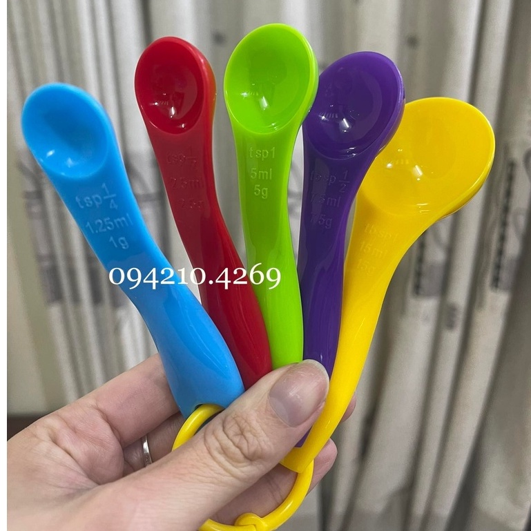 Giới thiệu Bộ Thìa Đong Nhà bếp 5 Cái ĐỦ SIZE Tiện Lợi Kèm Móc Treo- DÙNG ĐONG BỘT/SỮA/GIA VỊ BẰNG NHỰA AN TOÀN