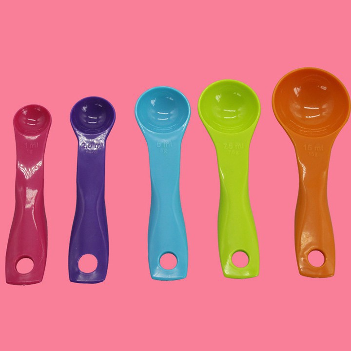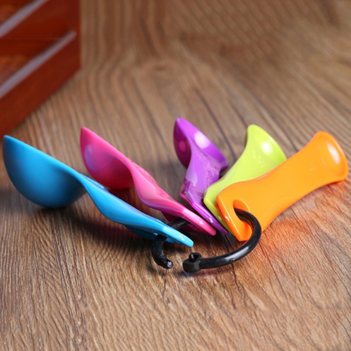 Bộ 5 muỗng đo lường bằng nhựa cao cấp thuận tiện cho bạn đo lường chính xác nguyên liệu để chế biến thức ăn.Kiểu dáng đơn giản, thiết kế xinh xắn. Có móc khóa giúp cố định bộ muỗng chắc chắn, dễ dàng treo móc, bảo quản.