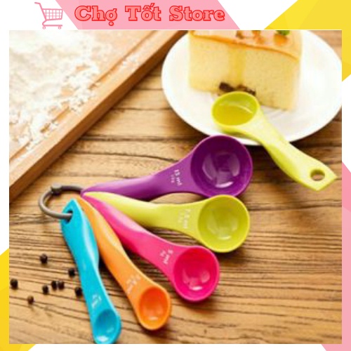 Bộ 5 muỗng đo lường bằng nhựa cao cấp thuận tiện cho bạn đo lường chính xác nguyên liệu để chế biến thức ăn.Kiểu dáng đơn giản, thiết kế xinh xắn. Có móc khóa giúp cố định bộ muỗng chắc chắn, dễ dàng treo móc, bảo quản.