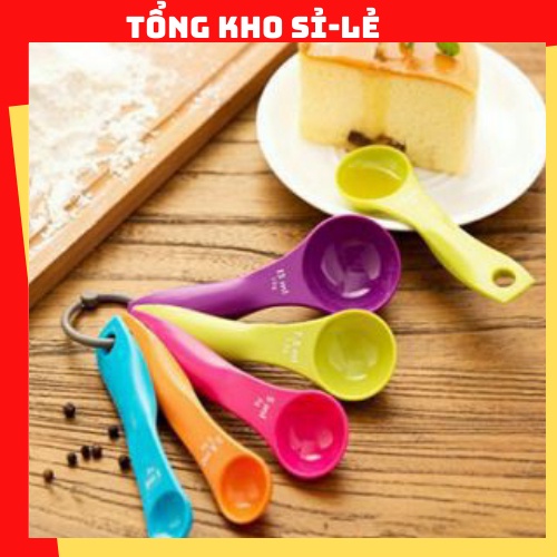 Bộ 5 muỗng đo lường bằng nhựa cao cấp thuận tiện cho bạn đo lường chính xác nguyên liệu để chế biến thức ăn.Kiểu dáng đơn giản, thiết kế xinh xắn. Có móc khóa giúp cố định bộ muỗng chắc chắn, dễ dàng treo móc, bảo quản.