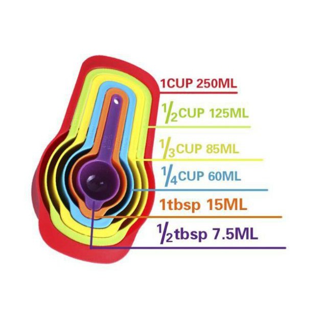 Bộ thìa đong nhà bếp set 5 cáiBộ thìa Nhựa Gồm các dung tích:1ml,2,5ml,5ml,7ml,15ml.