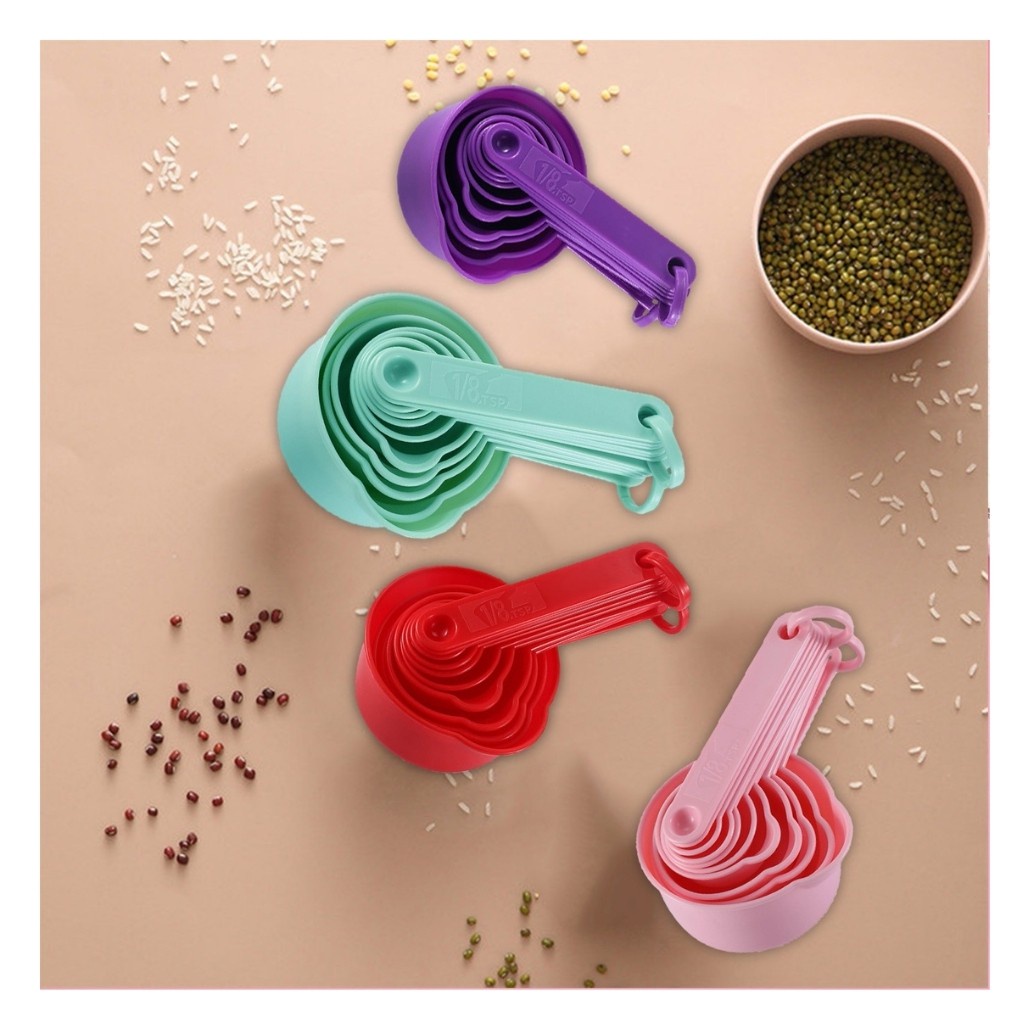 11 chiếc cốc đo lường bằng nhựa và bộ thìa để nướng trong bếp